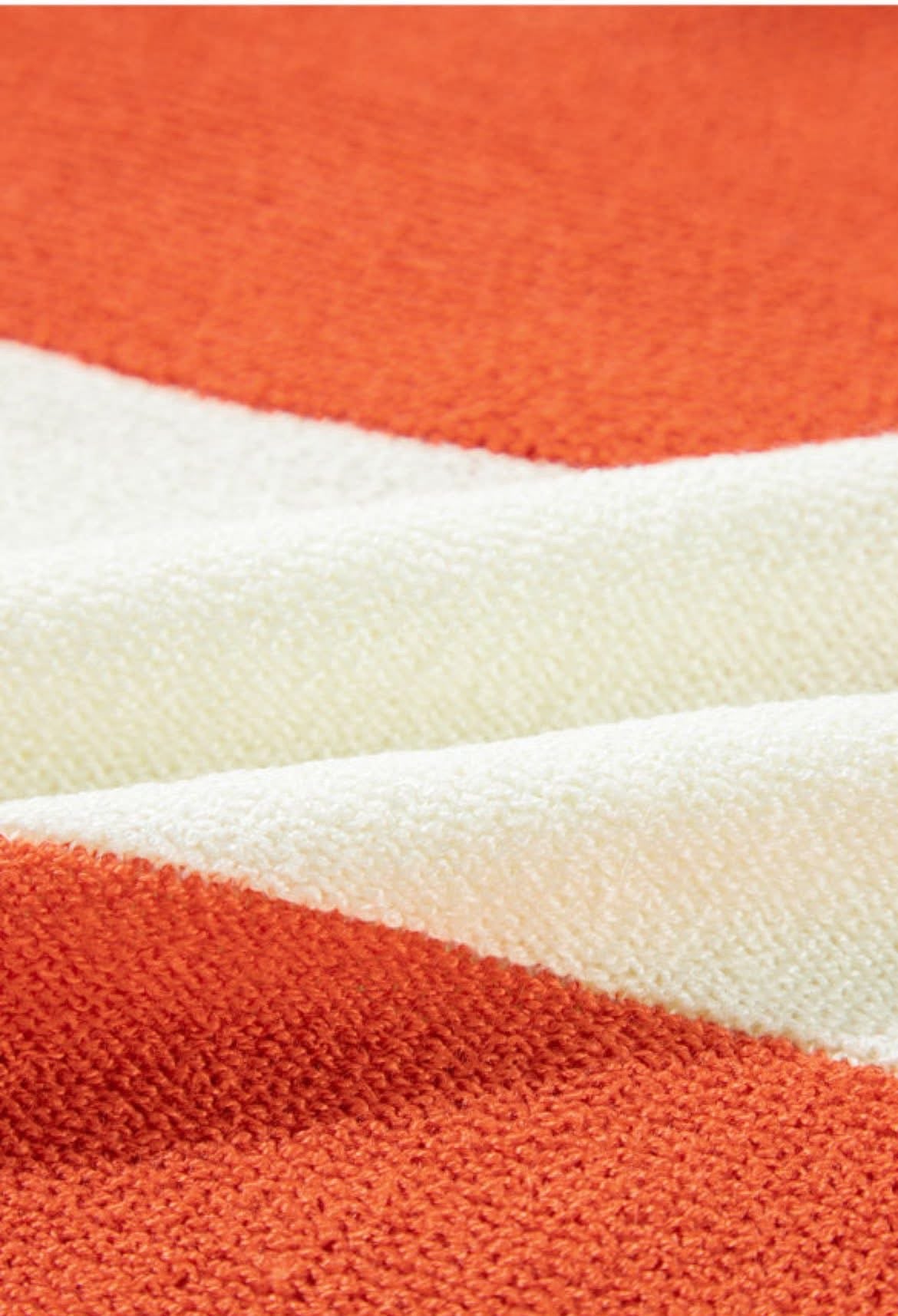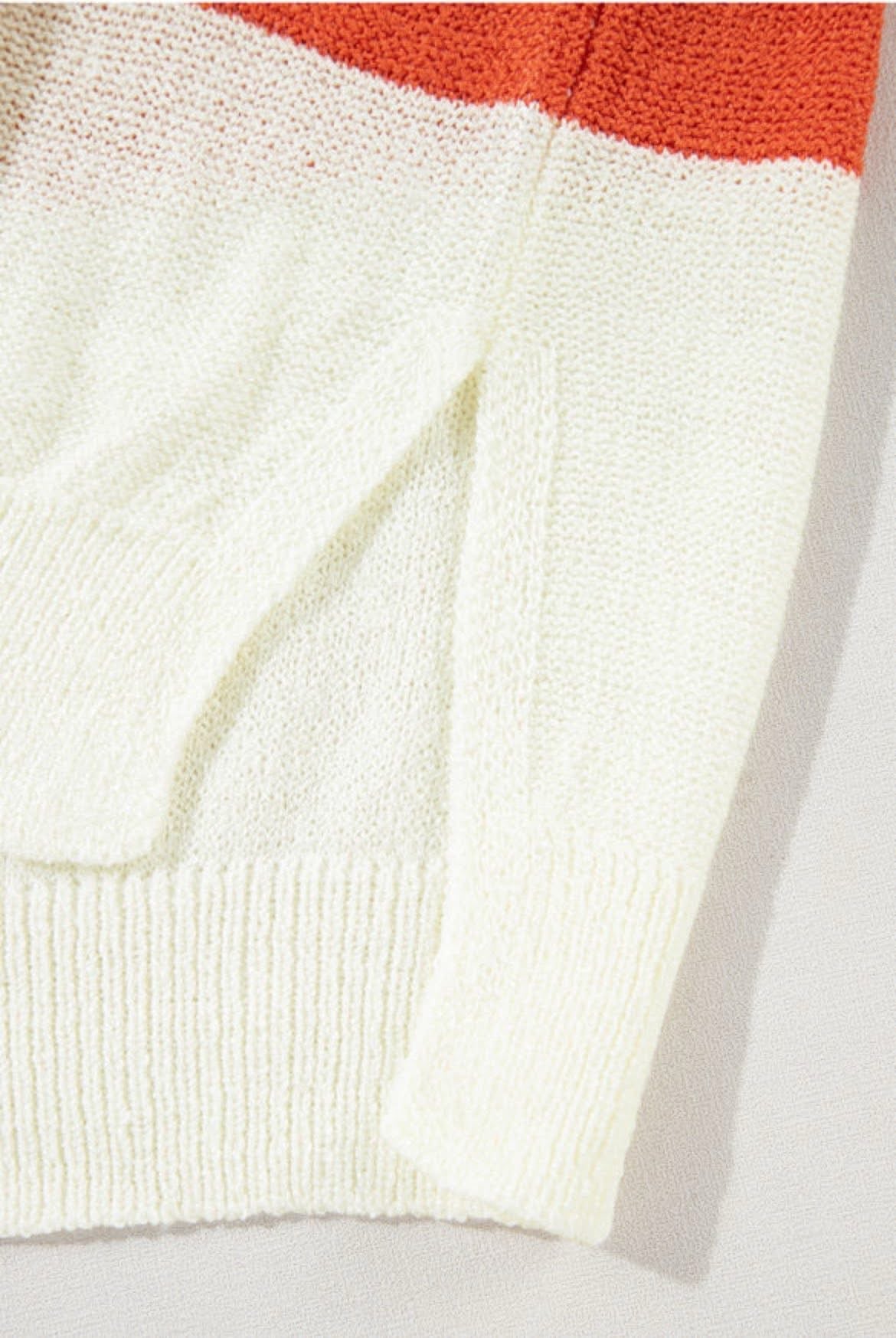 Bring the warmth and style with this eye-catching striped sweater! The perfect pop of orange makes it a seasonal fave for layering or wearing solo.