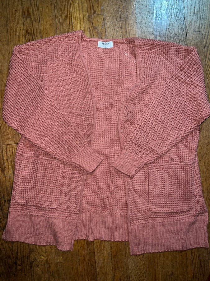 PLUS LOW GAUGE WAFFLE OPEN CARDIGAN